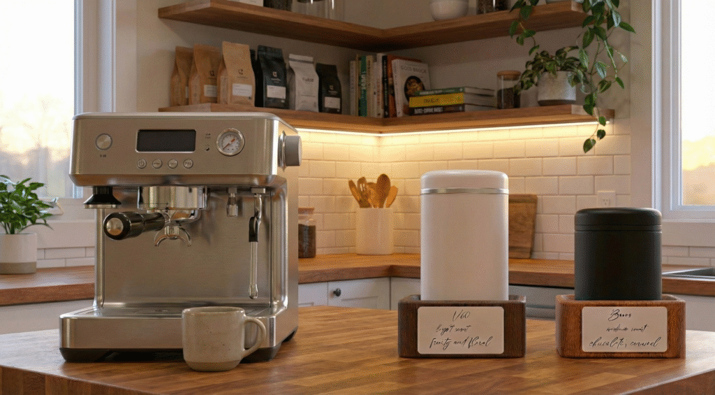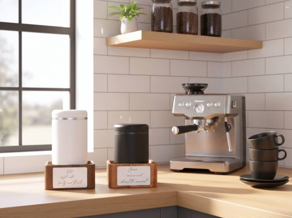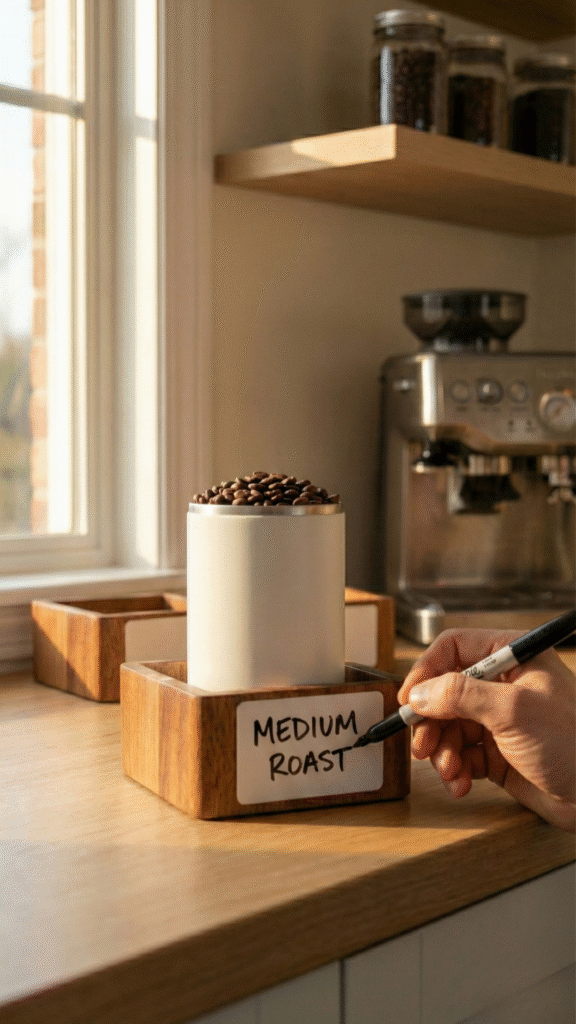 Keep origins, roast dates, and grind preferences clear—so your best bag never gets lost at the back.